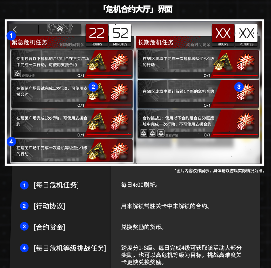 3、資源準備:確保你的賬戶擁有足夠的資源,如干員、裝備、源石等,合理管理和使用這些資源,以應對危機合約中的挑戰(zhàn)。