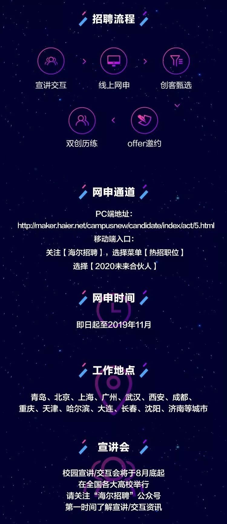海爾非常重視每一位求職者的體驗(yàn),因此我們建立了一套完善的招聘流程,讓求職者在整個(gè)應(yīng)聘過程中感受到海爾的專業(yè)和尊重。