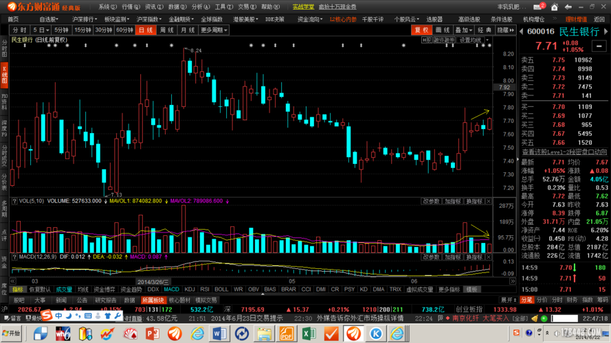 從K線圖來(lái)看,600016近期呈現(xiàn)上漲趨勢(shì),均線系統(tǒng)呈現(xiàn)多頭排列,市場(chǎng)走勢(shì)強(qiáng)勁,該股票的MACD指標(biāo)和RSI指標(biāo)均處于理想狀態(tài),顯示出良好的投資機(jī)會(huì)。