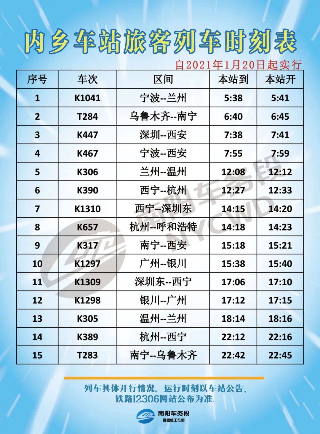 2、關注鐵路局官方微信、微博等社交媒體賬號,獲取最新時刻表信息。